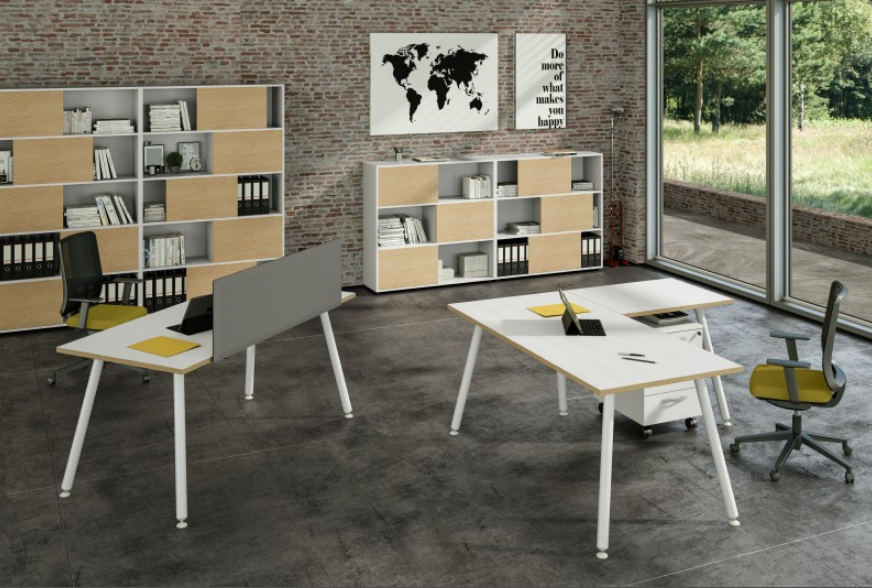 Realizzabili anche le postazioni bench, a 2 posti di lavoro.