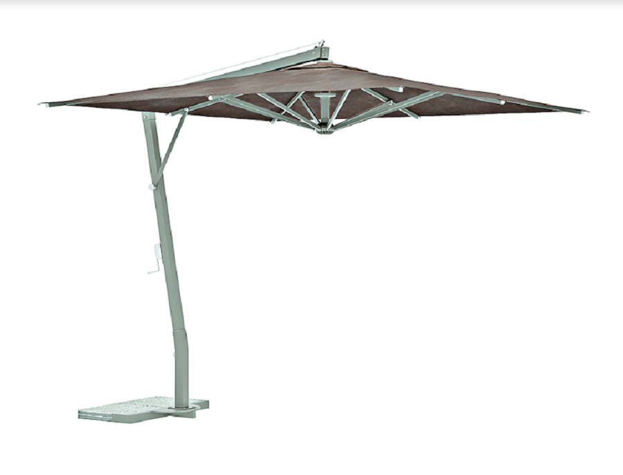 • possibilità di fissaggio al suolo • parti metalliche prima zincate, poi verniciate • con stecca antivento tra palo verticale e ragno • stecche intercambiabili • girevole 360° • Inclusa Base + Carter Copribase in acciaio zincato verniciato • ombrellone standard fornito senza pendente