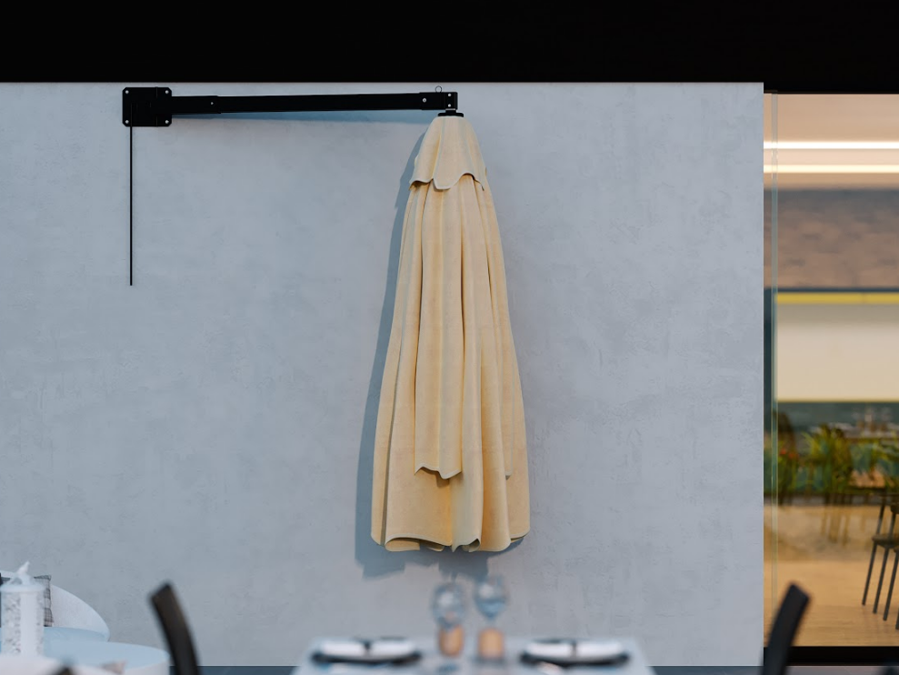 • parti metalliche prima zincate, poi verniciate • stecche intercambiabili su versione alluminio • possibilità di posizionamento aderente alla parete di aggancio • predisposizione per aggancio tramite tirante (incluso - operazione consigliata)
