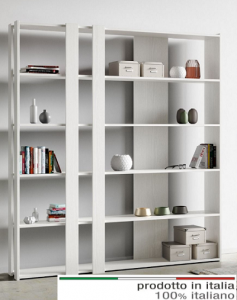 Libreria Kato CLa libreria Kato C viene proposta nella versione con 2 fasce nella parte anteriore, una nella parte posteriore e i fianchi di contenimento; da un lato il fianco è intero, nell'altro lato il fianco è composto da due fasce. Piani in microparticelle di legno disponibile nei colori bianco frassino noce e cemento. Realizzata interamente in Italia mediante l'utilizzo di materiali 100% italiani.