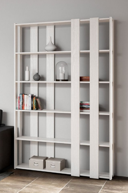 La libreria Kato E viene proposta nella versione con 8 fasce verticali. I fianchi laterali sono aperti per cui questa versione di libreria risulta alla vista particolarmente 'leggera' all'occhio. 'Legata' da 8 fasce, i piani risultano particolarmente resistenti alla flessione; è possibile quindi caricarli con ancora più oggetti senza avere il pericolo di avere piani che col tempo possano imbarcare. Piani in microparticelle di legno disponibile nei colori bianco frassino noce e cemento. Realizzata interamente in Italia mediante l'utilizzo di materiali 100% italiani.