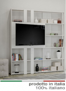 La libreria porta TV Kato L unisce due esigenze in un unico elemento d'arredo. TV e libreria insieme. Potrai avere subito tutti i tuoi libri od oggetti importanti quotidiani a portata di mano o goderti il tuo programma preferito senza dover spostare la tua poltrona. Il vano retro TV nasconde oltre ai cavi di collegamento della TV, anche le varie periferiche.