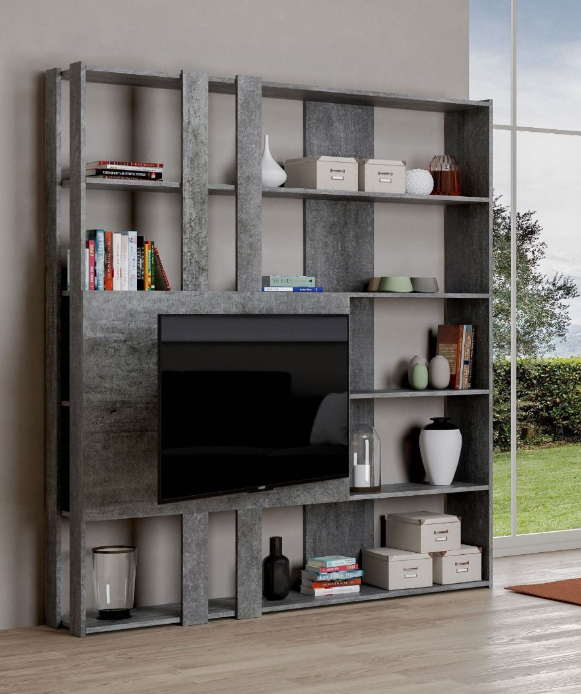 La libreria porta TV Kato M è un elemento d'arredo originale che saprà conquistarsi uno spazio nel mondo dell'arredamento. TV e libreria insieme. I piani orizzontali sono particolarmente resistenti alla flessione essendo 'legati' alle fasce verticali.