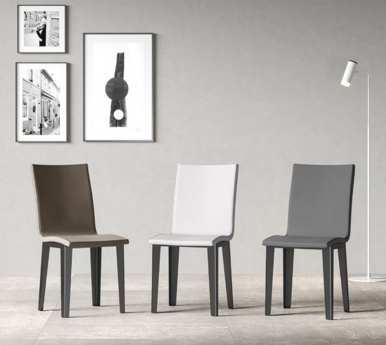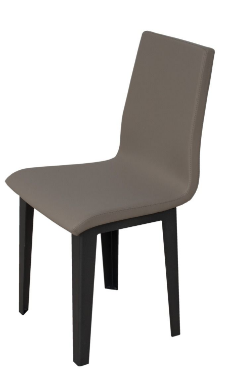 Sedia Armida, una sedia senza bracciolo, con gambe coniche in metallo verniciato antracite e seduta in legno rivestita in similpelle leggermente imbottita.