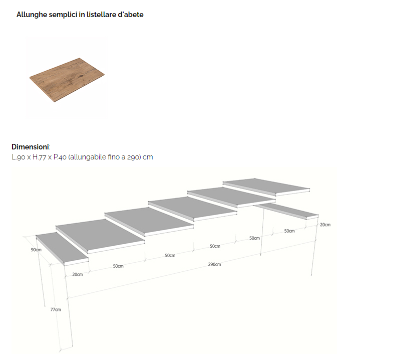 E' possibile che si verifichi una leggera discrepanza tra il colore del piano e quella delle allunghe, dovuta al fatto che il piano è sempre esposto alla luce del sole, mentre le allunghe vengono in genere utilizzate meno di frequente. E' possibile che una leggera differenza si verifichi anche a contatto con la luce durante la permanenza nel nostro magazzino.
