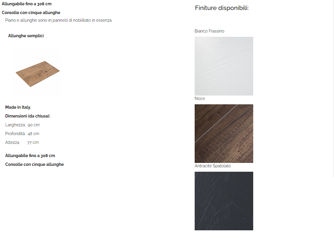 - Piano e allunghe sono in pannelli di nobilitato in essenza.