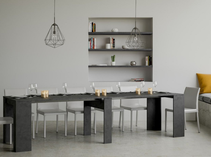 Piccola e compatta da chiusa, la consolle si trasforma in poche mosse in un pratico e spazioso tavolo da pranzo da 3,08 metri per le occasioni più importanti.