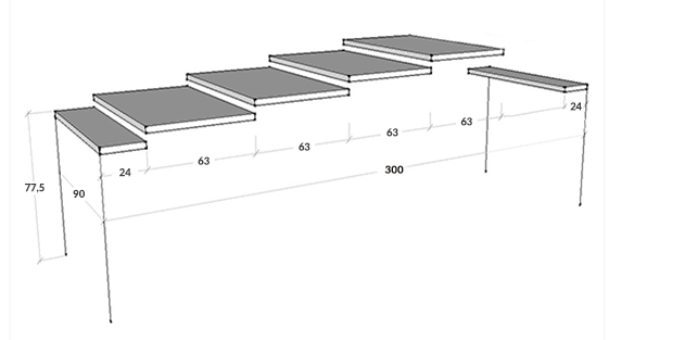L.90 x H.77,5 x P48 (allungabile fino a 300) cm