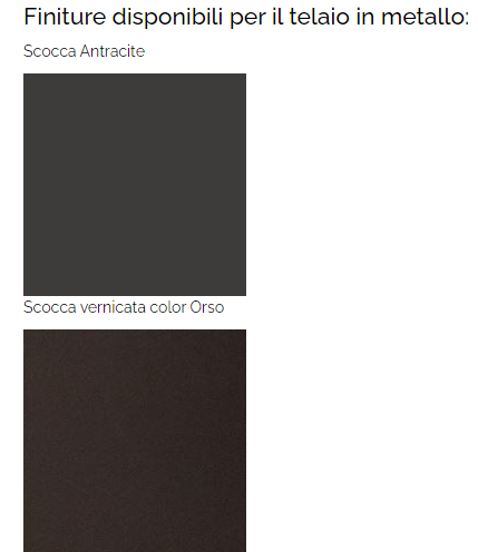 SU RICHIESTA E' POSSIBILE CAMBIARE IL COLORE DEL TELAIO SECONDO I VARI RAL CON AGGIUNTA DI € 33,00 + IVA