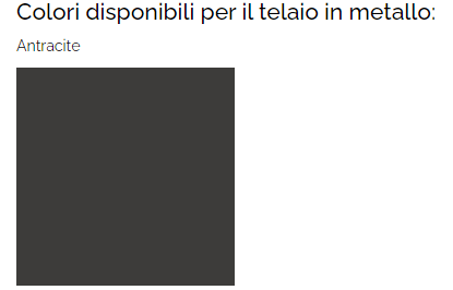 SU RICHIESTA E' POSSIBILE CAMBIARE IL COLORE DEL TELAIO SECONDO I VARI RAL CON AGGIUNTA DI € 36,00 + IVA