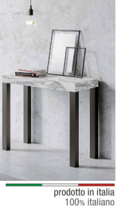Everday, una consolle allungabile dal design lineare e tradizionale che si abbina perfettamente a qualunque stile di arredamento. Dotata di un sistema a tre allunghe, si estende progressivamente fino a 196 cm. Una consolle dalla grande versatilità, può essere inserita in qualunque ambiente, ingresso, corridoio, soggiorno, sala da pranzo, studio o camera da letto, donando a questi spazi un gusto nuovo. Costituita da un telaio in metallo che sorregge un piano in microparticelle di legno disponibile in cinque diverse finiture: bianco frassino, quercia natura, noce, cemento e marmo. Le allunghe sono della stessa finitura del piano. Personalizzabile anche nella scelta del colore del telaio: disponibile in ferro verniciato antracite. Telaio in metallo lavorato al pantografo ad alta precisione. La sezione delle gambe è 60x60. Realizzata interamente in Italia mediante l'utilizzo di materiali 100% italiani.