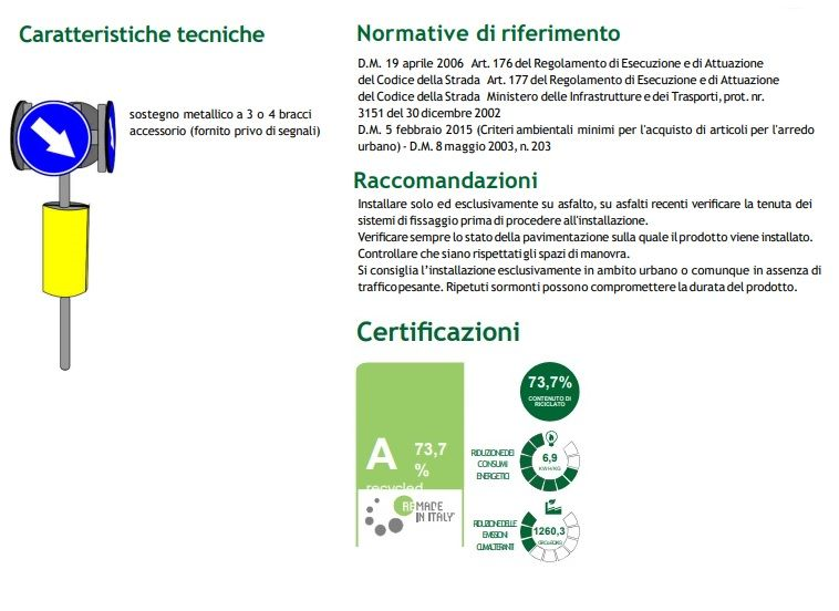 Sostegno centrale a 3 o 4 bracci con base circolare da alloggiare nell'apposita sede al centro della rotonda. Dovrà essere prestata particolare attenzione sul tipo di pavimentazione e sul tipo di carico: su asfalti recenti dovrà essere valutata attentamente la tenuta dei tasselli; strade con passaggio di mezzi pesanti, bilici autoarticolati ecc.. l’installazione è sconsigliata; Verificare il corretto diametro di sterzata, sollecitazioni torsionali, sfregamenti continuativi possono ridurre sensibilmente la durata del prodotto