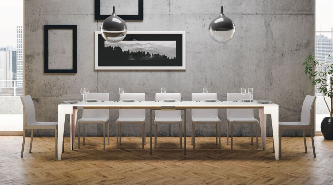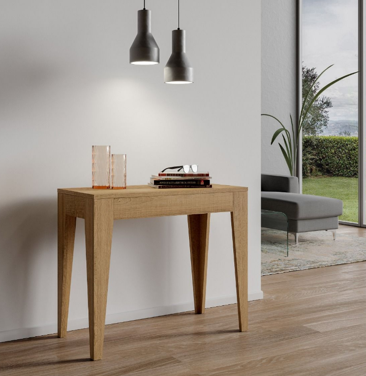 Consolle allungabile ISOTTA Elemento d'arredo che connubia praticità con bellezza. Isotta è una consolle che grazie al fatto di essere allungabile può risolvere tutti i tuoi problemi di spazio in ogni ambiente, dal soggiorno alla cucina. Puoi ospitare comodamente fino a 14 ospiti usando tutte le 5 prolunghe in dotazione. Allungabile progressivamente. Realizzata in pannelli di nobilitato 100 % made in Italy. Guide in alluminio, struttura resistente e stabile.